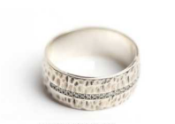 Hammered Sterling Silver Ring with a row of White Diamonds.