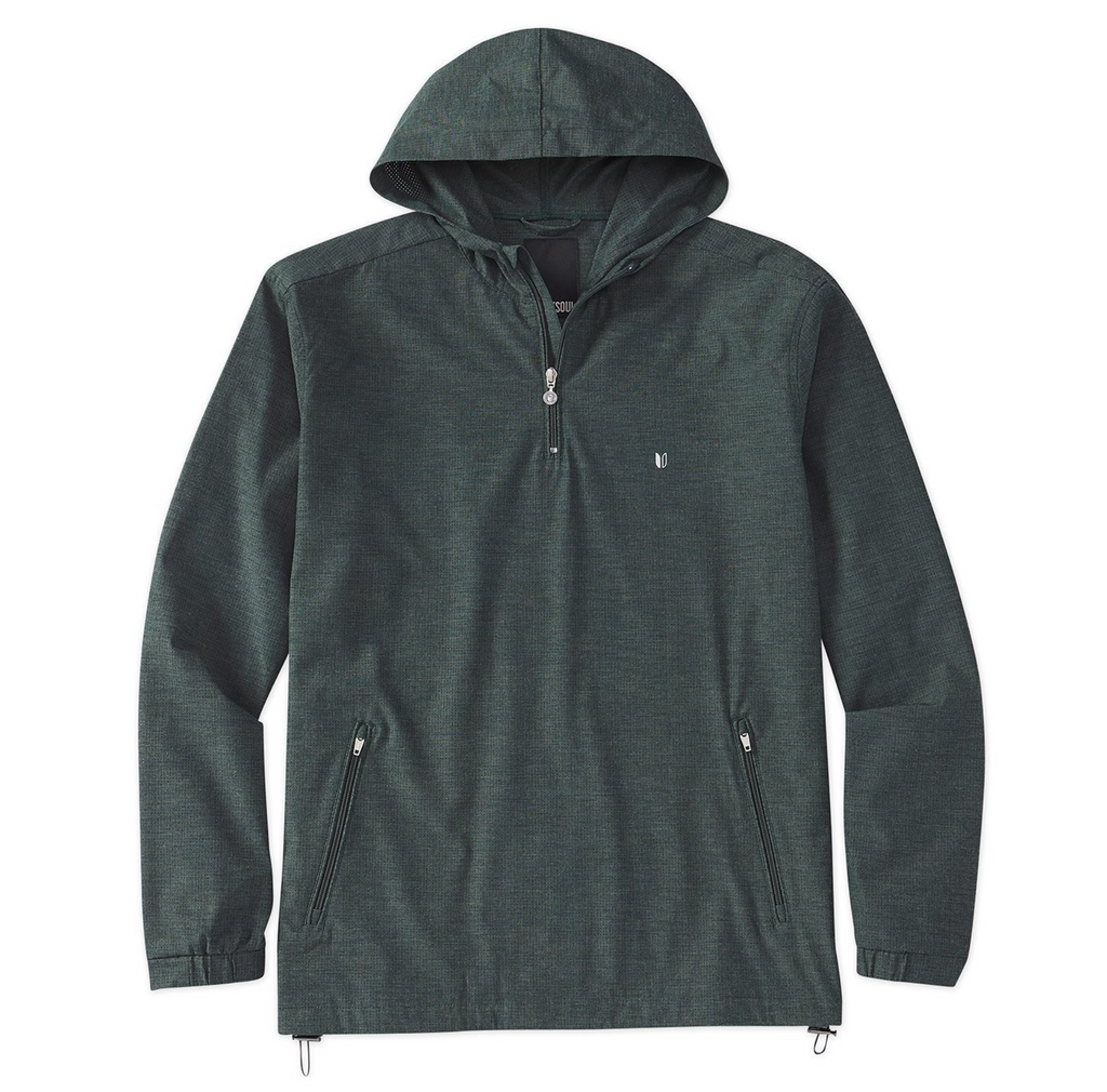 Made from the popular Boardwalker fabric, now available as a hoodie. 4-Way Stretch / Cotton Blend / Linen Texture perforated half zip pullover windbreaker.
