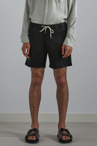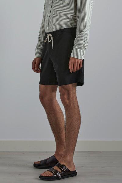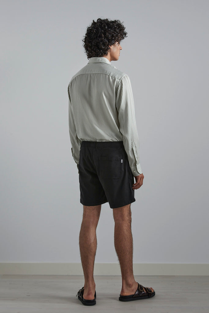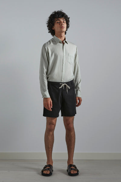 A classic pair of drawstring shorts crafted in a smooth TENCEL™ Lyocell and LENZING™ ECOVERO™-blend twill from the vertical mill Santanderina. TENCEL™ Lyocell is a closed-loop alternative that is derived from wood pulp, in production 99% of the solvent and wastewater is recycled and reused.