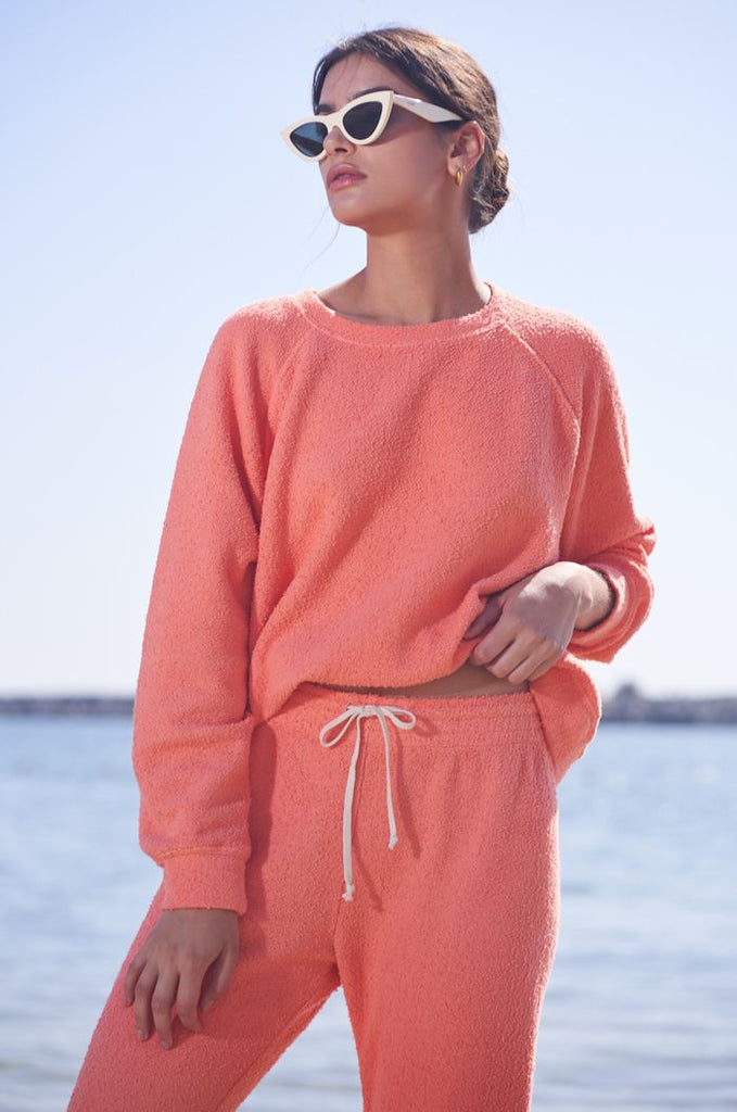 We designed our perfect sweatpant. The Vintage Sweatpant features a cropped, relaxed fit with an elastic waistband and drawcord. The Cotton Boucle fabric is incredibly soft and adds a new twist to this classic style. Chic comfort at it's finest.